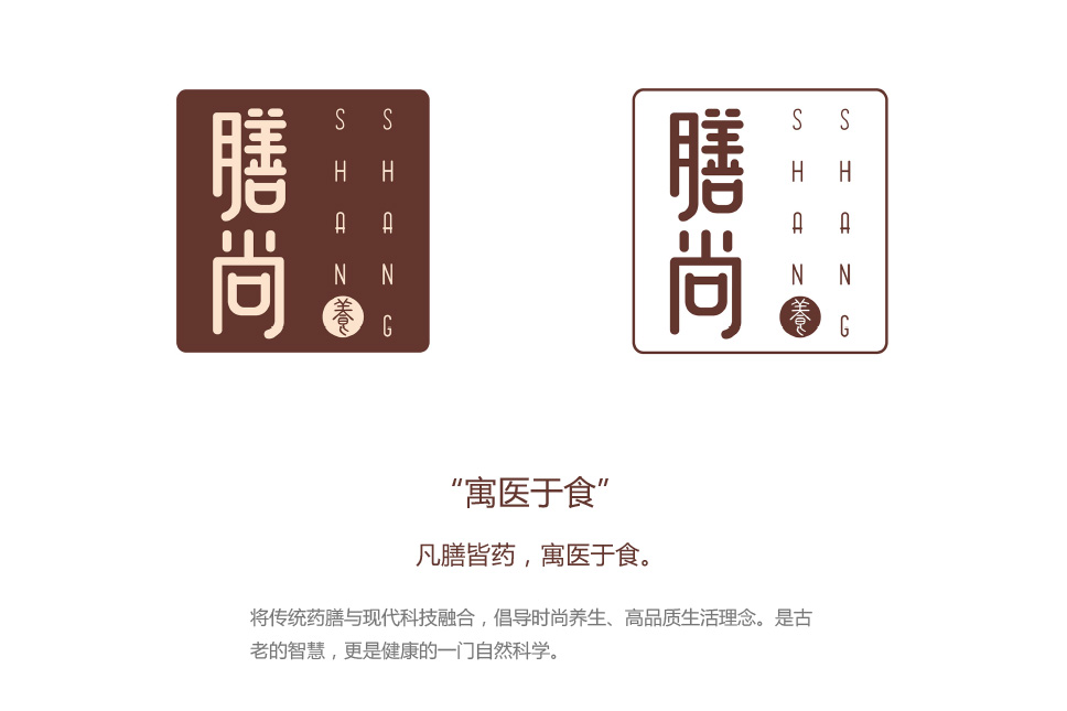 膳尚的標(biāo)志吸取了傳統(tǒng)印章的特點,進(jìn)行簡化,方中有圓,渾然天成,將安全可靠的老字號概念帶給人全新的時尚現(xiàn)代的氣息。字體設(shè)計圓潤有富自然氣息,傳遞出品牌滋養(yǎng)身心、健康生態(tài)的屬性特點,打破傳統(tǒng)排列方式,使得品牌更加具有獨(dú)特個性。