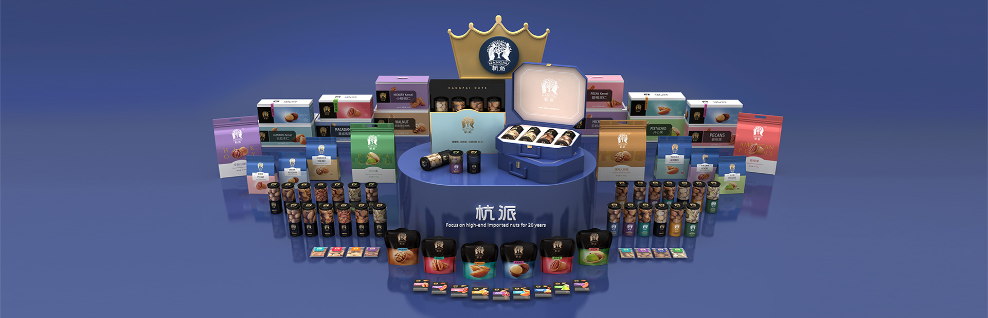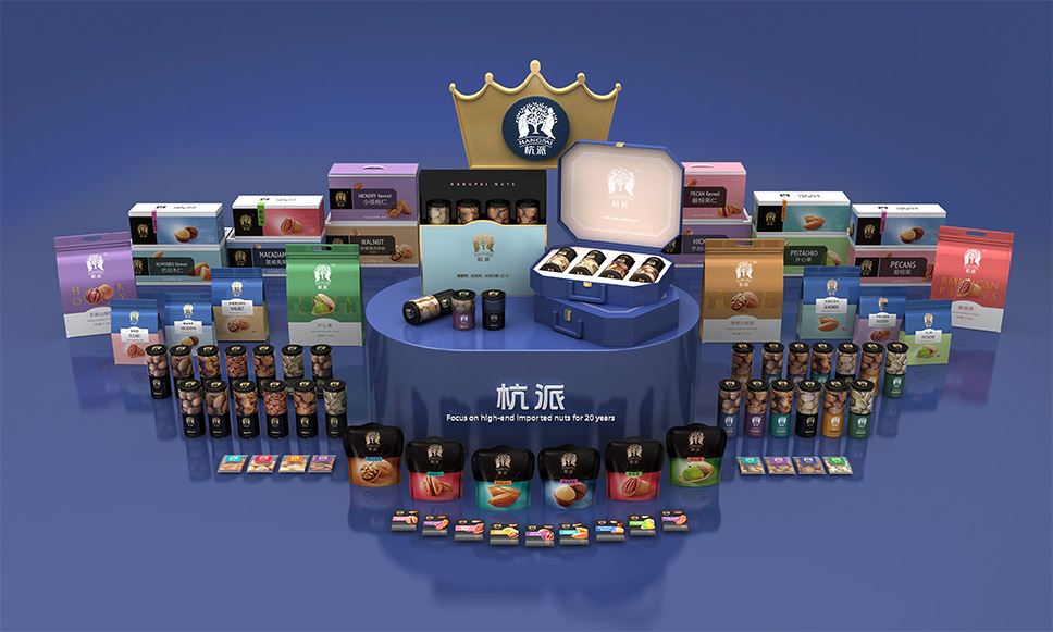 堅(jiān)守杭派不可復(fù)制的產(chǎn)品力,以20年堅(jiān)果行業(yè)先驅(qū)者和領(lǐng)導(dǎo)者的身份進(jìn)軍零售市場(chǎng)。突出全球化概念,打造全球化堅(jiān)果品牌形象,用數(shù)字突出品牌的實(shí)力和專業(yè),具有鮮明識(shí)別性和記憶點(diǎn)。為未來(lái)杭派打造世界堅(jiān)果文化戰(zhàn)略目標(biāo)做鋪墊。
