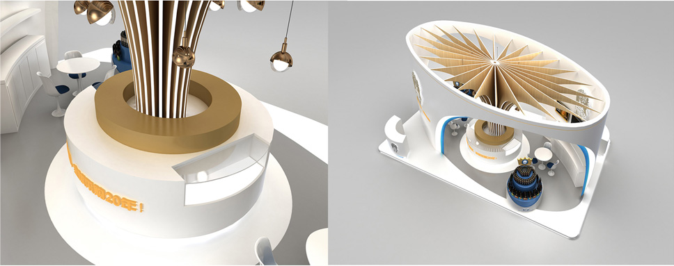 李華清空間設(shè)計(jì)公司定位的杭派展位形象延續(xù)品牌形象靈魂,堅(jiān)果樹(shù)的造型具有行業(yè)屬性特征和很強(qiáng)的辨識(shí)度,橢圓的主造型與堅(jiān)果產(chǎn)品本身的造型相契合,獨(dú)特的發(fā)光樹(shù)造型展示臺(tái)和堅(jiān)果創(chuàng)意吊燈,既寓意繁茂的盛景,又使空間設(shè)計(jì)增加了意境和豐富視覺(jué)感。色彩系統(tǒng)采用了木質(zhì)、白和藍(lán)色搭配,現(xiàn)代簡(jiǎn)約的調(diào)性使展位設(shè)計(jì)整體清新雅致。現(xiàn)場(chǎng)造型吸引了大批消費(fèi)者,加深了品牌認(rèn)知,構(gòu)建了杭派高端休閑食品的品牌形象。